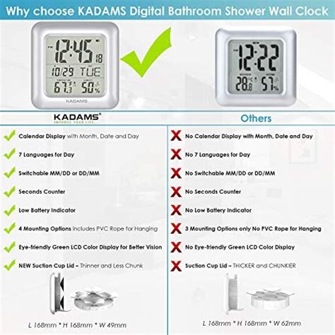 Web Kadams Clock Manual Your Resource For Information About Clocks Kadams Digital Bathroom Shower Wall Clock, Waterproof For Water Spray, Seconds Counter,.